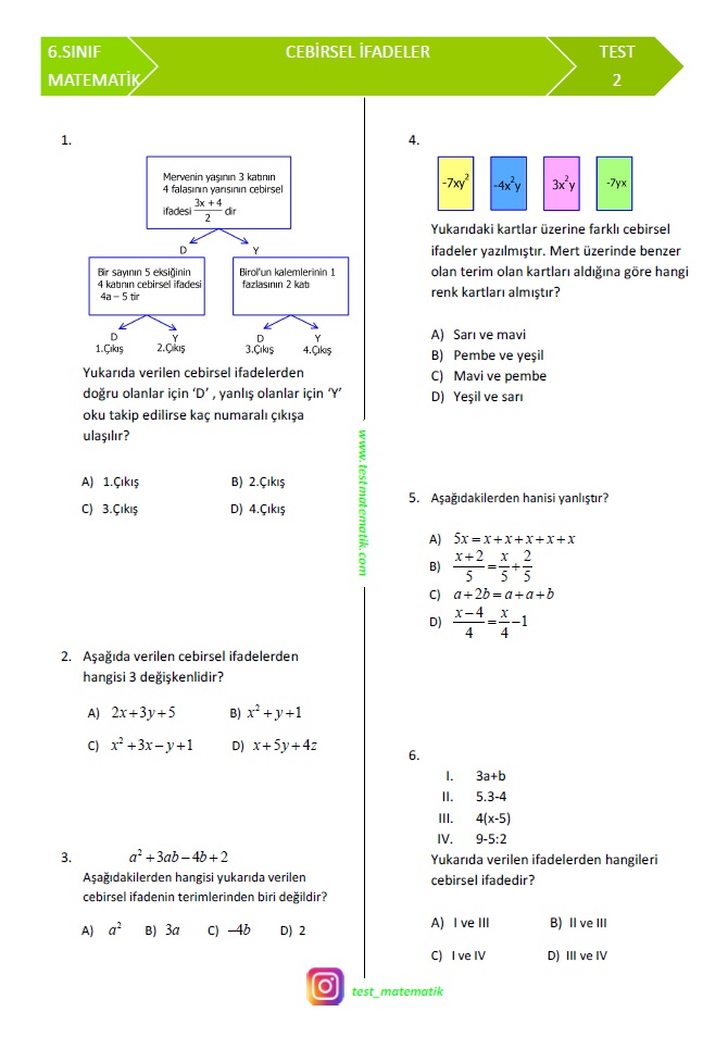 6 sinif testleri