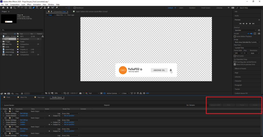 adobe after effects render butonu