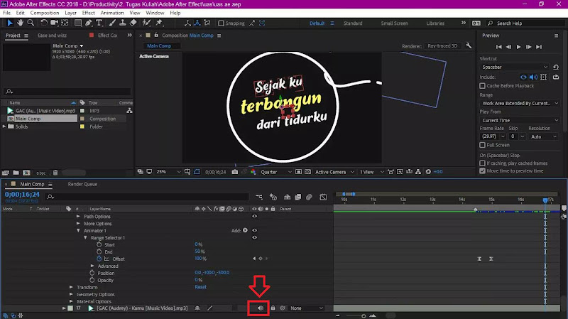 play preview di after effect