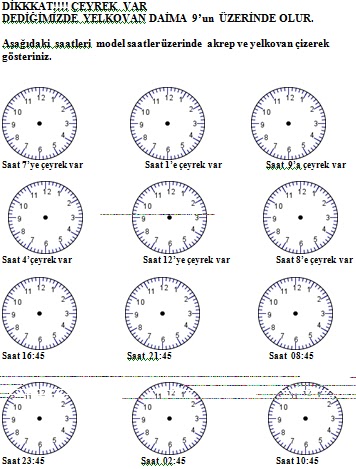 saatleri ogreniyorum tam yarim ve ceyrek saatleri okuma