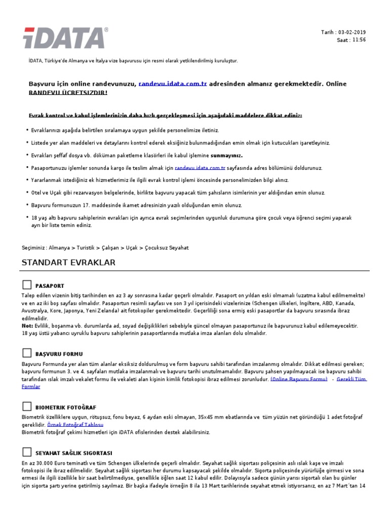 almanya vizesi evraklari