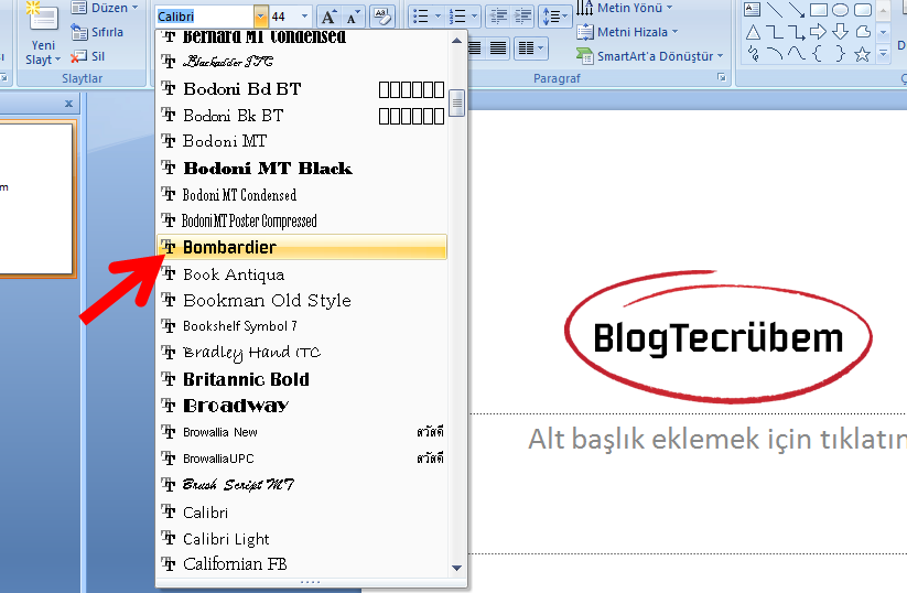 ms powerpoint e farkli yazi tipleri