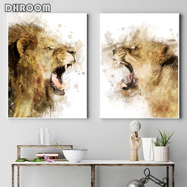 modern soyut renkli hayvan aslan cift posterler ve baskilar tuval resimleri duvar sanati resimleri icin oturma odasi dekor yok cerceve