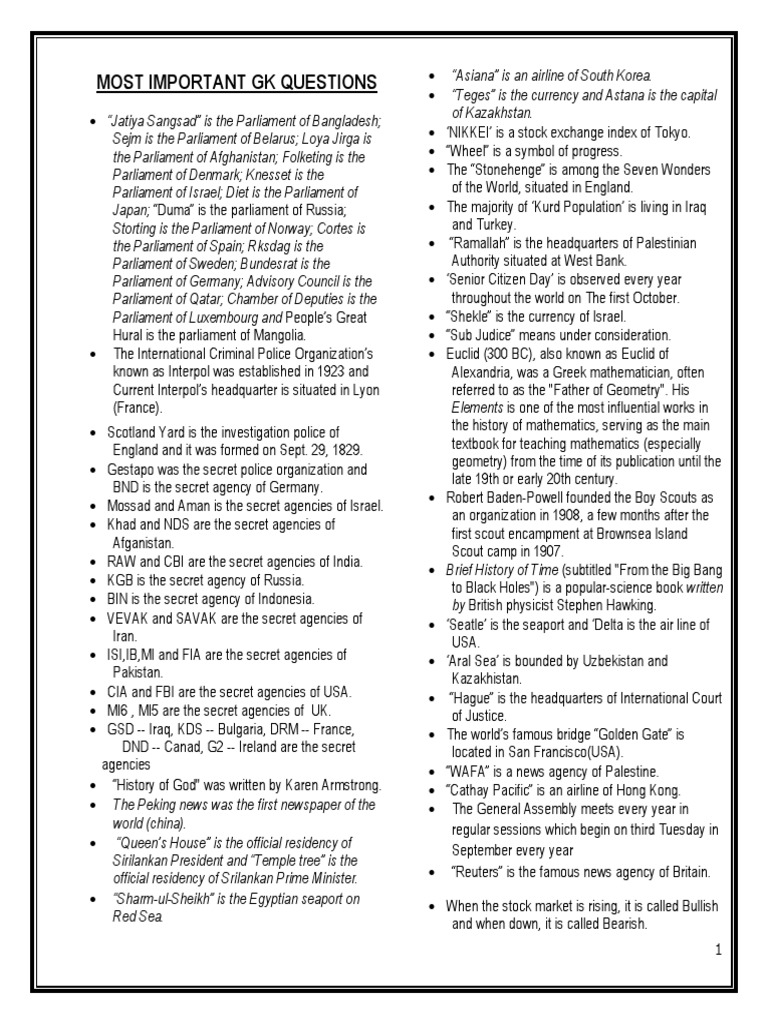 most important gk questions docx