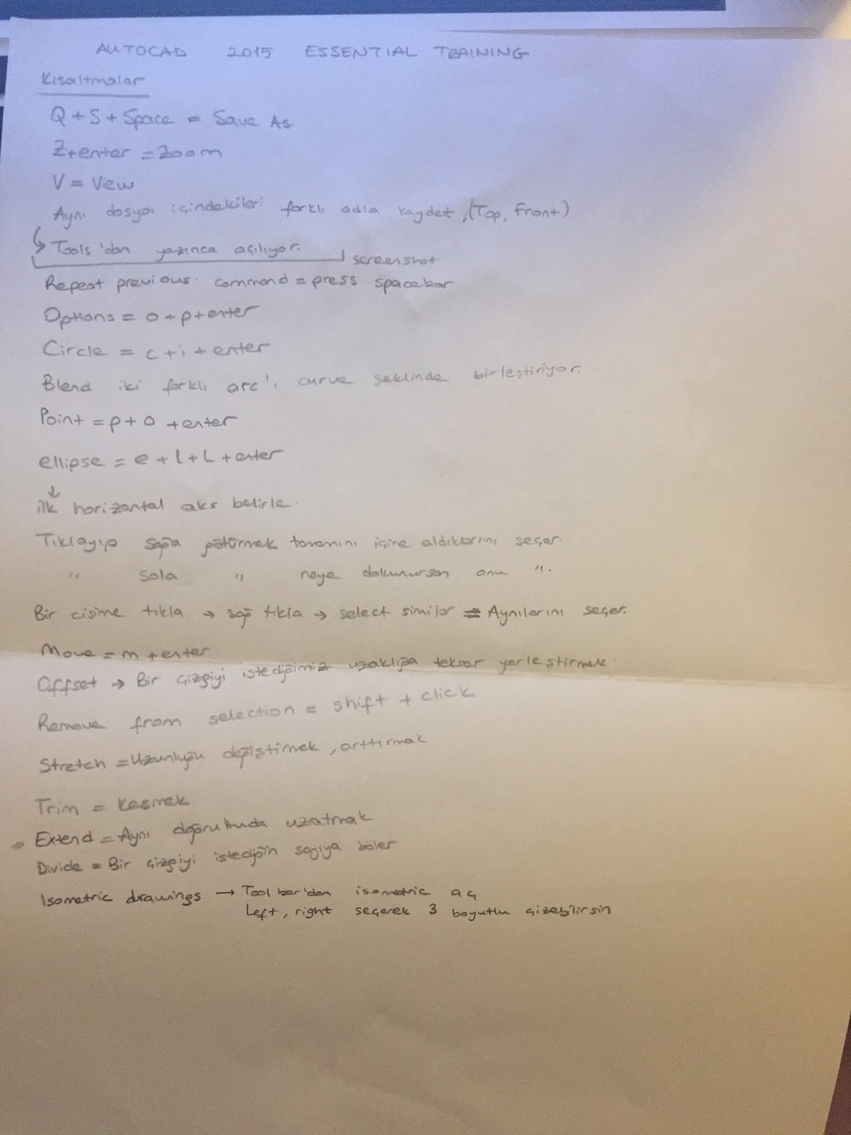autocad kullanirken komutlarin