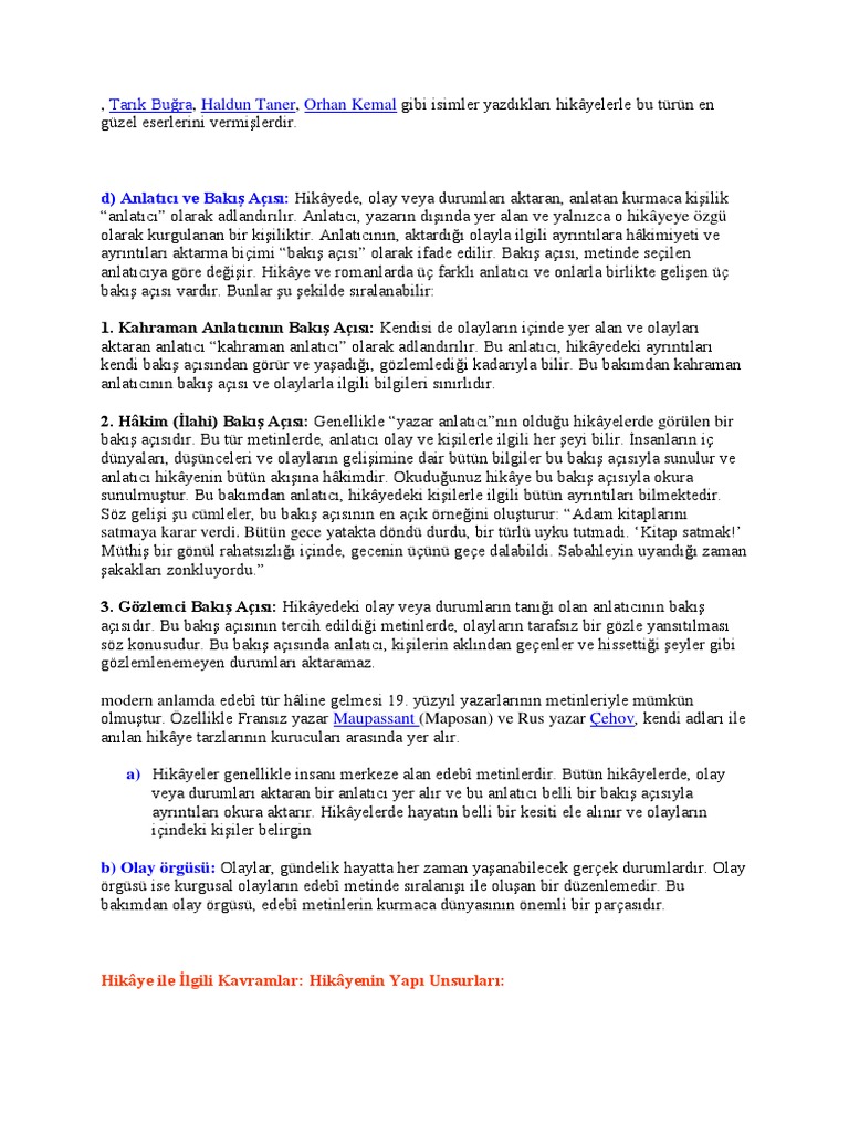 anlatici ve bakis acisi ornekleri